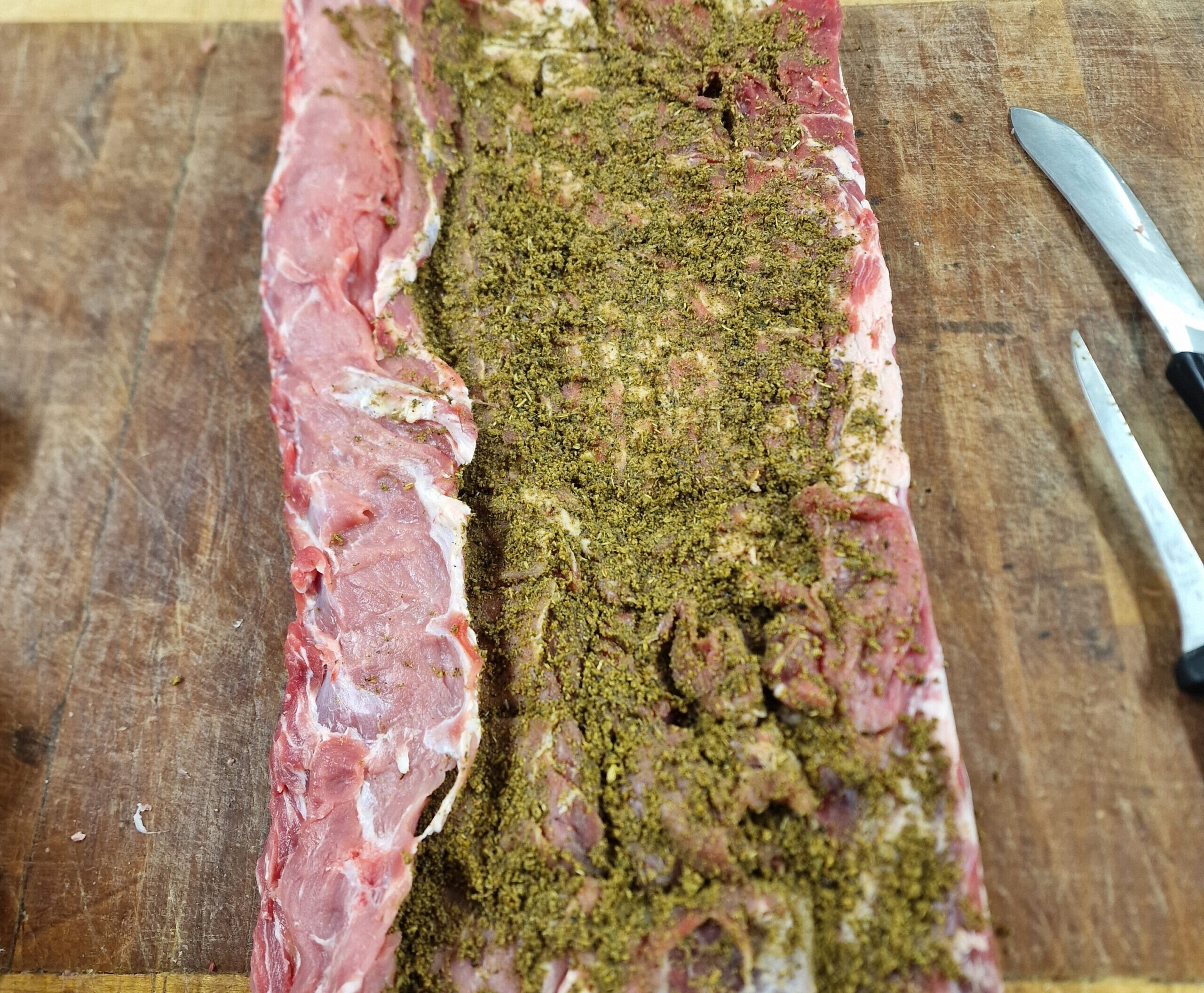 Stuffed with fennel seeds, black peppercorns, Himalayan salt, fresh sage, fresh rosemary, fresh garlic.