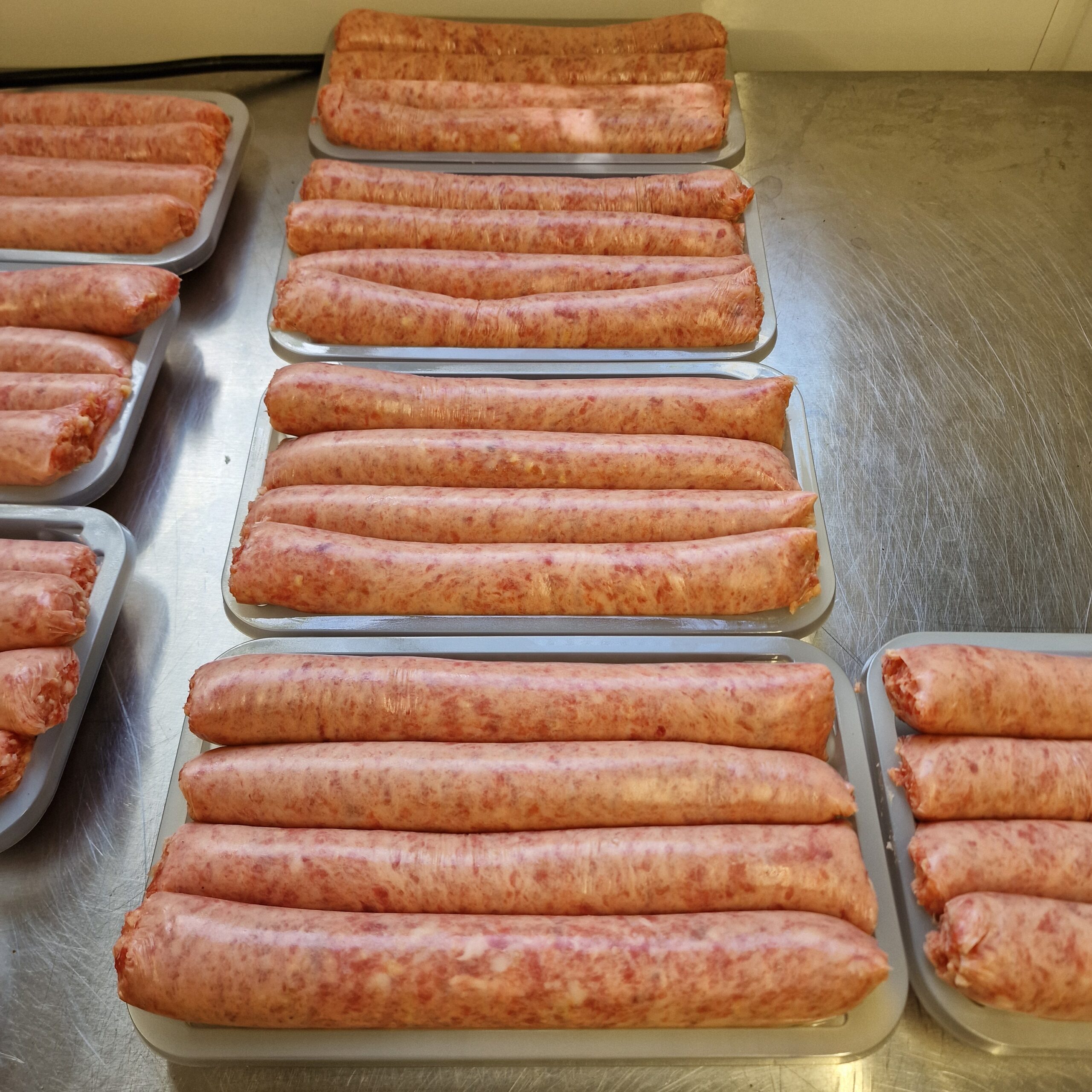 A plain Tamworth jumbo pork sausage perfect for BBQs, especially in a hotdog!